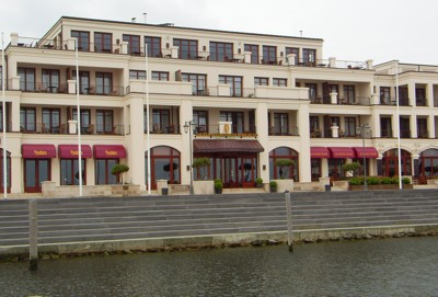 An der Ostseite der Warnowmündung gelegen, der Yachthafen Hohe Düne mit 850 Liegeplätzen und einem wirklich riesigem Hotelkomplex.