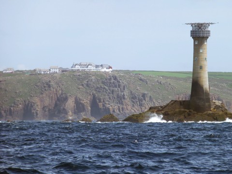 Ich segle inzwischen auf korrektem Kurs ohne zu kreuzen Richtung Land’s End. Allerdings nur noch 3,5 kn durchs Wasser. Bei Land’s End, dem südwestlichstem Punkt Englands, wird’s noch mal etwas welliger. Aber auch hier nur etwa 1,4 m Welle. Froh war ich das ich zeitlich hinkam und die mitlaufende Strömung mit 3 kn auch hier passte.