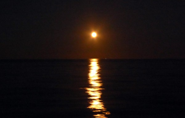 Auf dem Bild schön zu sehen, wie die Sonne ins Wasser taucht, das Wasser verdampft und darüber Wolken entstehen und mir die nächste Dusche bringen ;-)